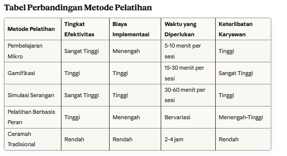 Kecepatan perubahan ancaman membuat konten pelatihan cepat usang. Program harus dirancang fleksibel dengan mekanisme pembaruan rutin. Bermitra dengan penyedia pelatihan profesional memastikan materi selalu relevan dengan tren terkini.