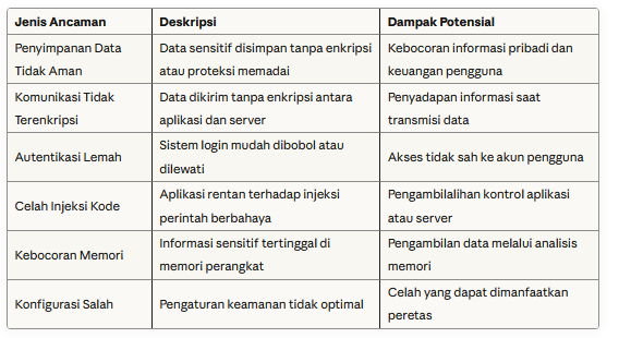 Jasa VAPT mobile app dirancang untuk mendeteksi berbagai jenis ancaman yang dapat merugikan bisnis Anda. Berikut adalah ancaman umum yang dapat diidentifikasi: